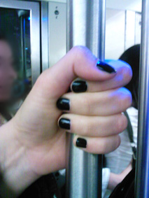 La vraie fashionista ne prend pas le métro sans s’être auparavant consciencieusement, méticuleusement, techniquement, parfaitement, posé (vous, vous essayez, ça dépasse, ça colle pas, ça se déchire, c’est chiant) le vernis autocollant dont tout le monde parle. Elle, elle sait le faire.