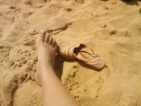Alors que les doigts du-dit pied en éventail, au bord de la mer, avec le sable pour se faire des gommages et avoir le peton nickel !