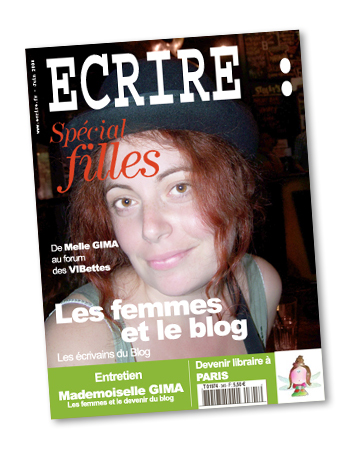 La preuve, ce mois ci, en une du faux mag, Melle GIMA, libraire de son état (youhouuu, en recherche de poste nous signale t’on dans l’oreillette), blogueuse de la première heure et accessoirement rousse incendiaire de la blogobulle.